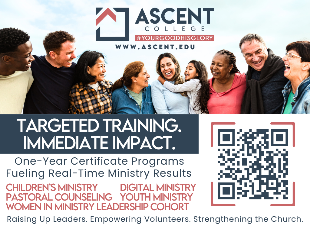 Ascent College’s Women in Ministry Leadership Certificate is a year-long program designed to empower and equip women serving in a variety of ministry roles. Through shared experiences, unique stories, and Spirit-filled sisterhood, this cohort encourages women to boldly walk in their callings.